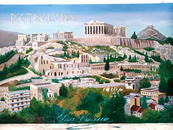 Η μικρή αυλή αυτού του ισόγειο Airbnb διαμερίσματος, απέκτησε μια θέα χαρακτηριστική και πολύ όμορφη για κάθε τουρίστα της Ελλάδας, αλλά και για κάθε Έλληνα, στον βράχο της Ακρόπολης, με τον Παρθενώνα, το Ερέχθειο, το Ναό της Απτέρου Νίκης, το Ηρώδειο, ενώ χαμηλά φαίνονται τα πρώτα σπίτια των Άνω Πετραλώνων και δεξιά στο βάθος ο Λυκαβηττός.