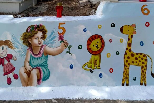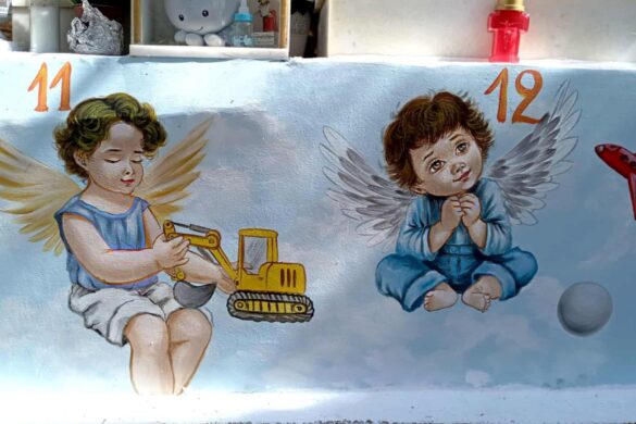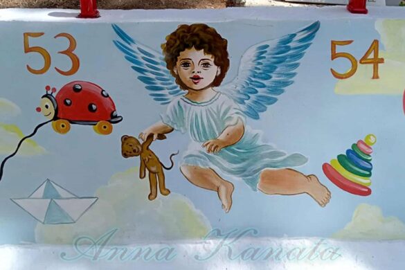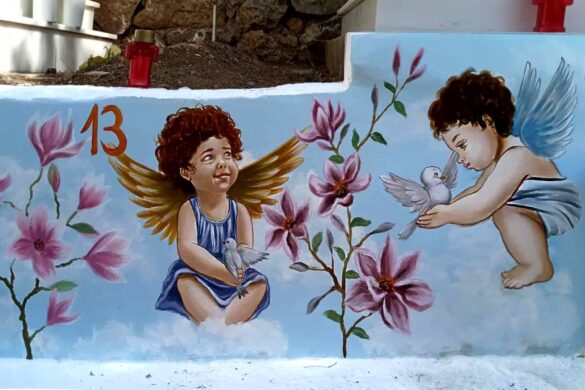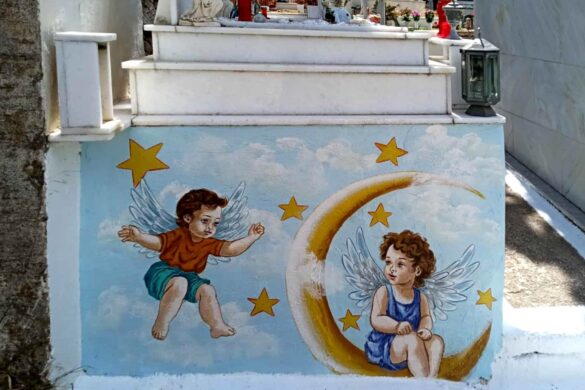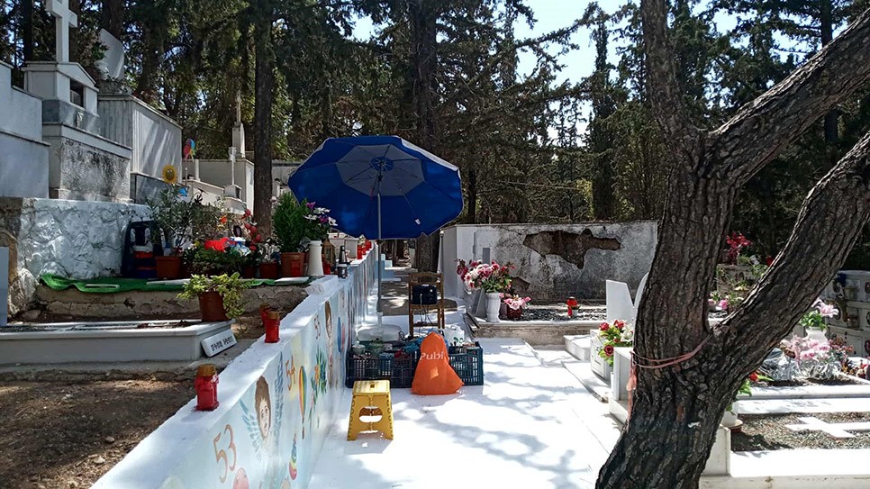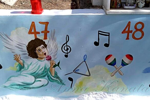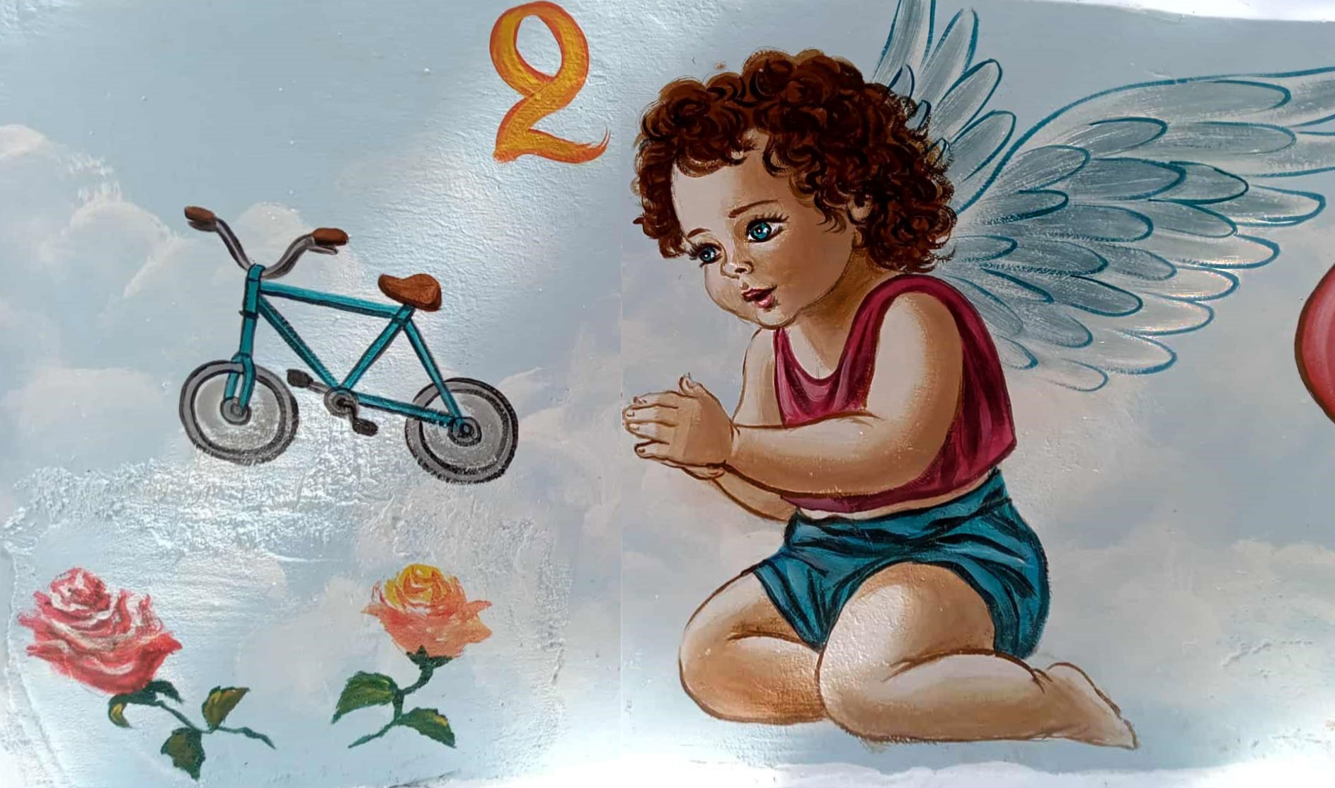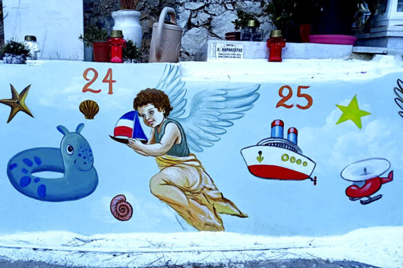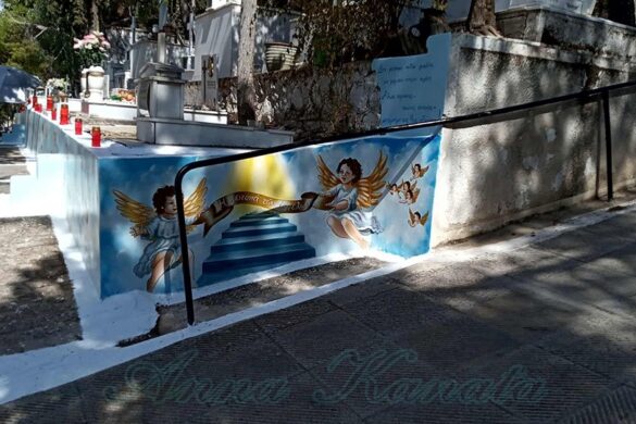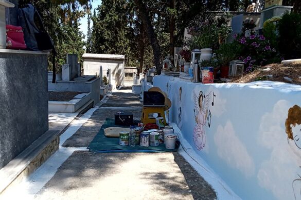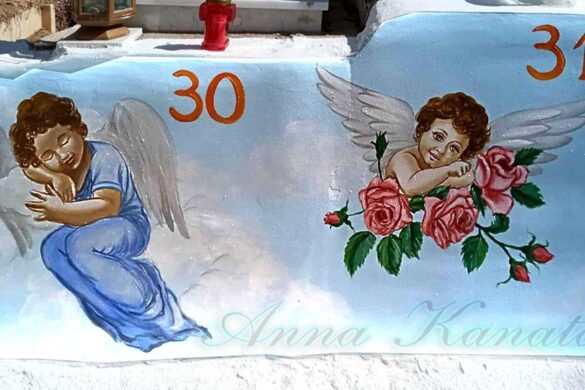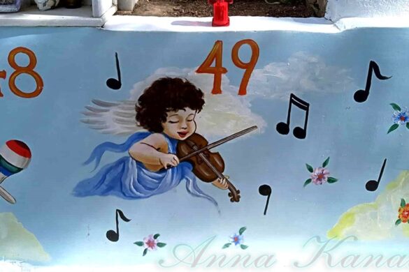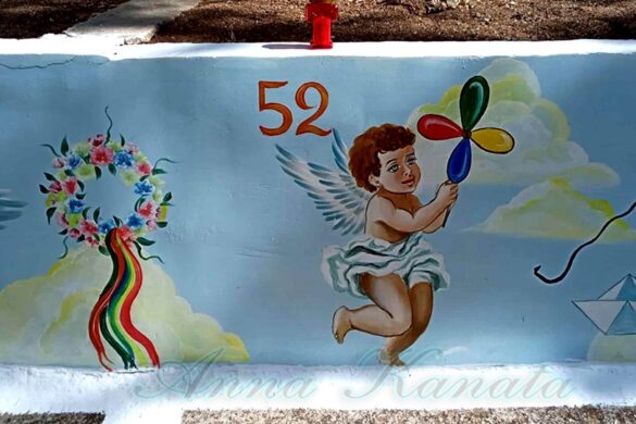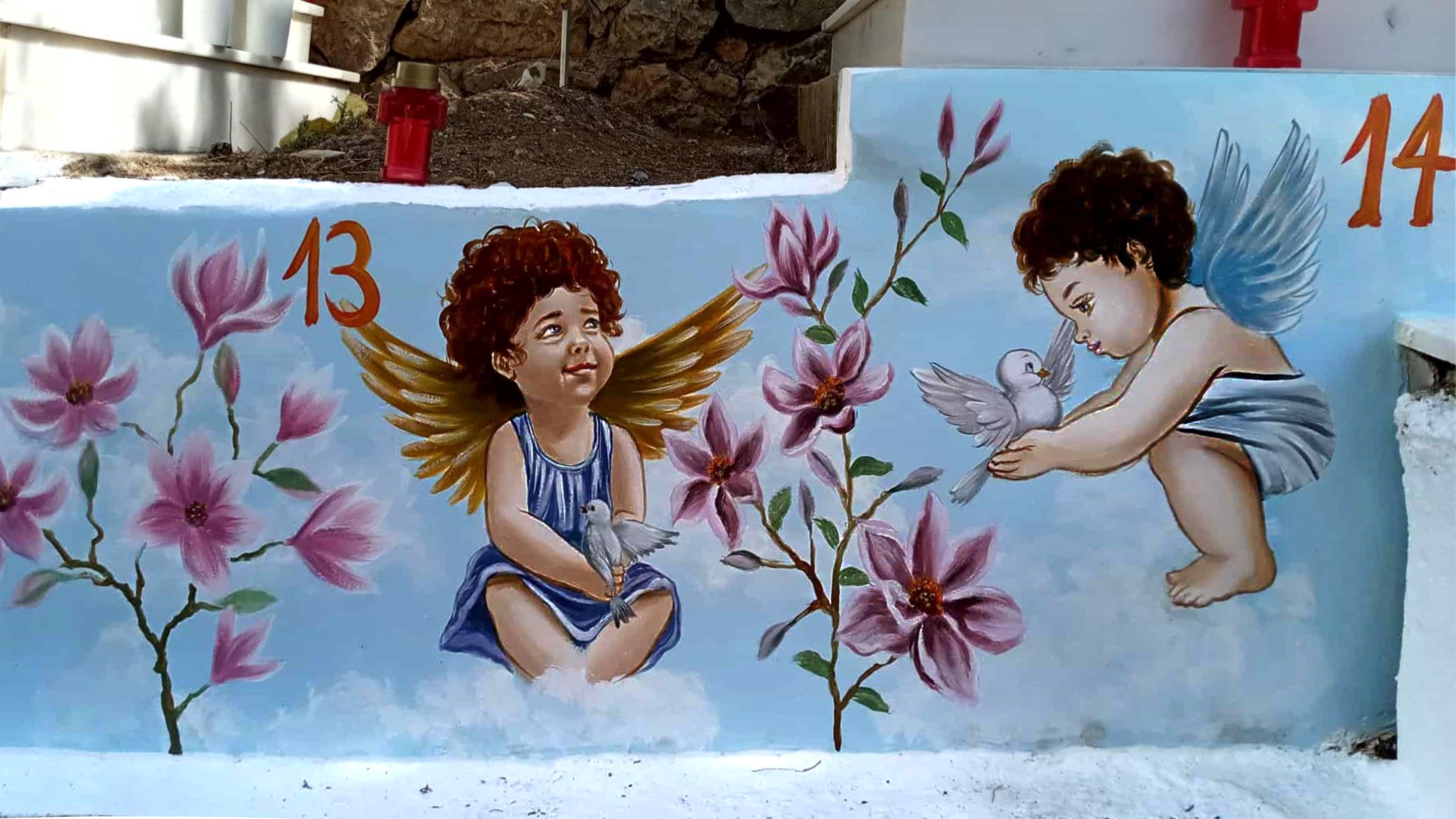 Στο παιδικό τμήμα του Κοιμητηρίου Ζωγράφου, μου ανατέθηκε από τους γονείς ενός μικρούλη 2 ετών, που έφυγε από τη ζωή, να ζωγραφίσω το τοιχίο μπροστά από τους παιδικούς τάφους.