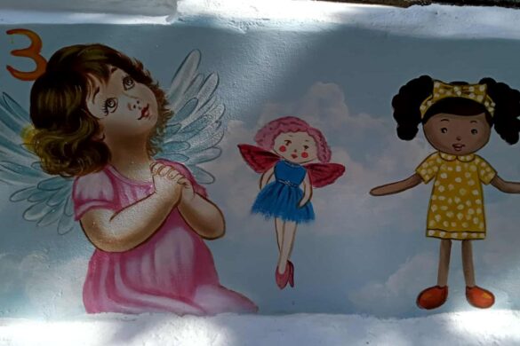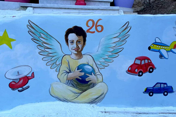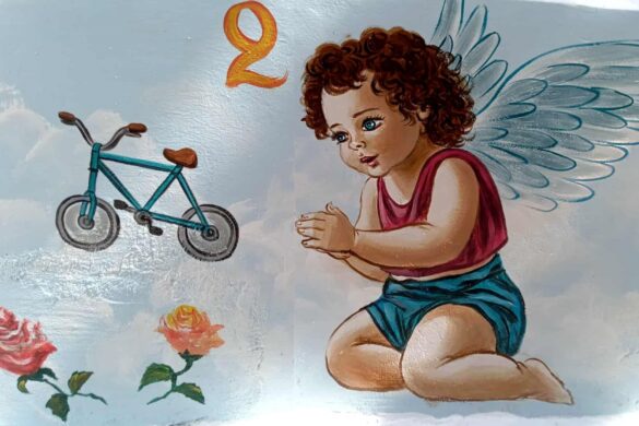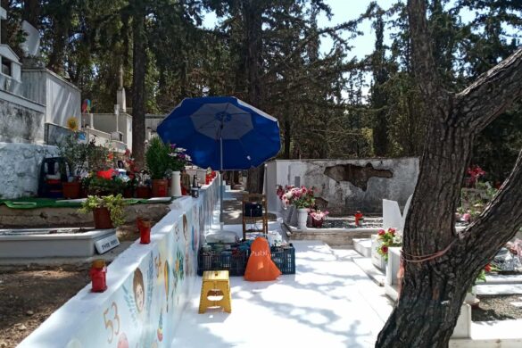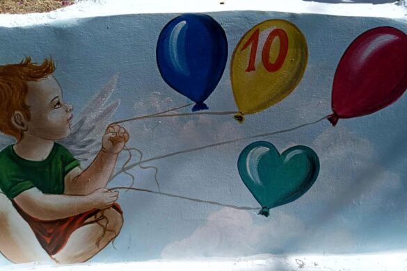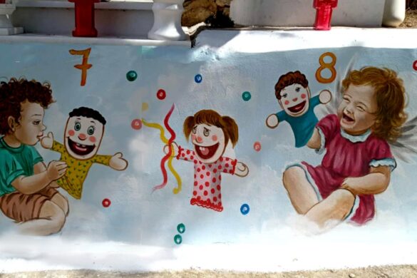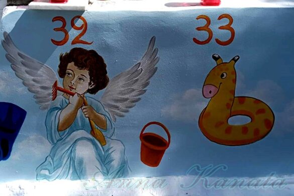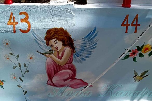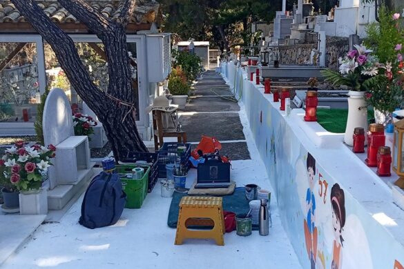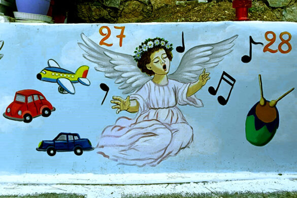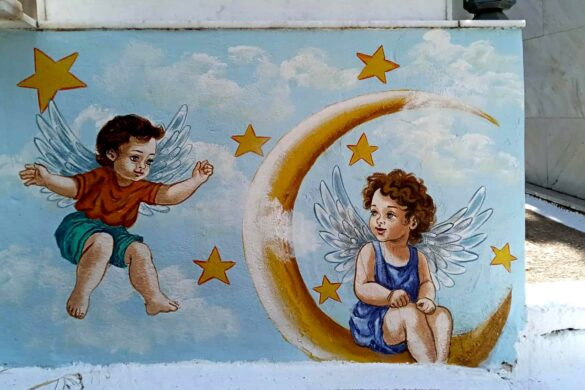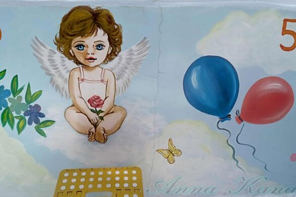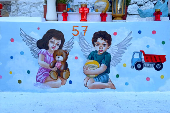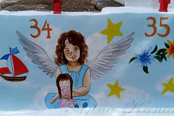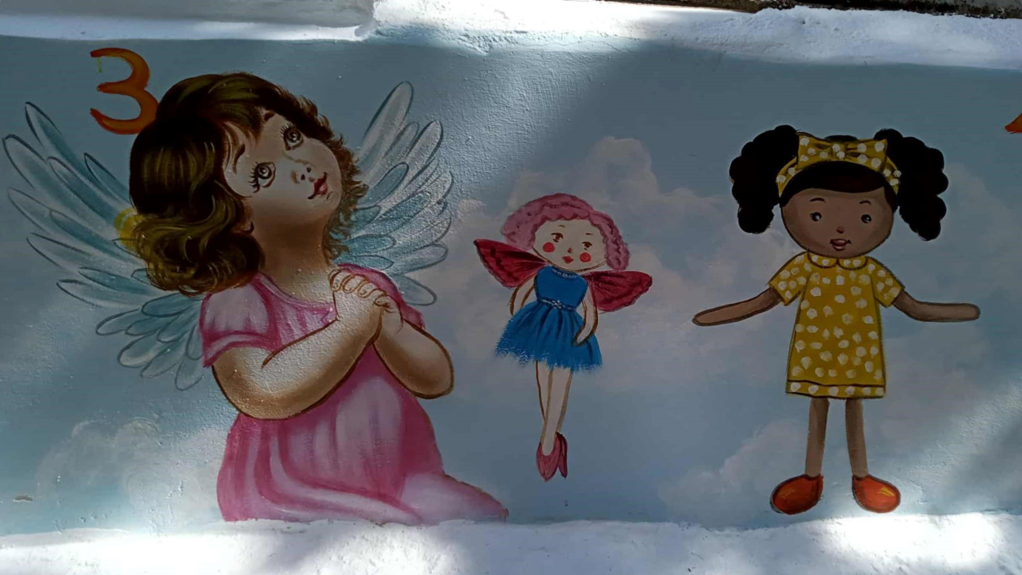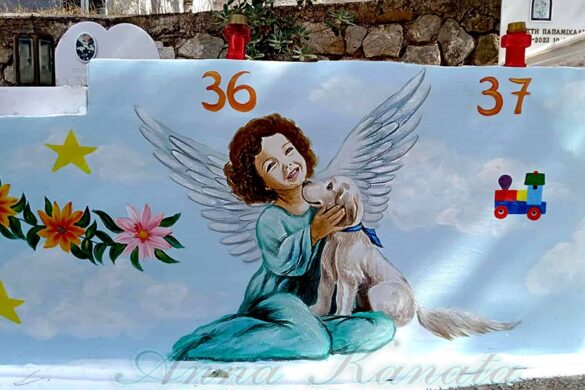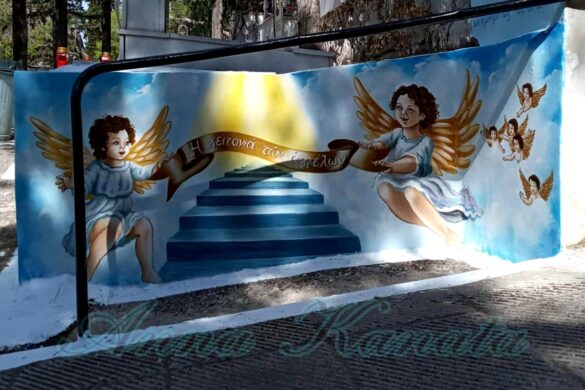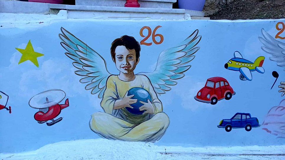 Στο παιδικό τμήμα του Κοιμητηρίου Ζωγράφου, μου ανατέθηκε από τους γονείς ενός μικρούλη 2 ετών, που έφυγε από τη ζωή, να ζωγραφίσω το τοιχίο μπροστά από τους παιδικούς τάφους.