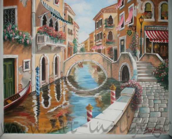 Έτσι τους ζωγράφισα αυτή την όμορφη εικόνα -αντίγραφο σύγχρονου αγνώστου Ενετού ζωγράφου που επέλεξαν μέσα από τον κατάλογο που τους παρουσίασα- η οποία στη συνέχεια θα πλαισιωθεί από ένα πραγματικό παράθυρο με ανοιχτά παραθυρόφυλλα.