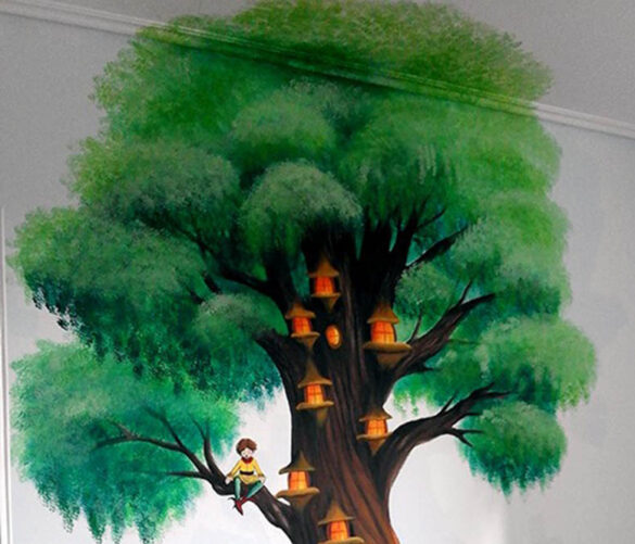 Στο αγαπημένο μου αστεράκι, τον Ορέστη, που βάφτισα τον Μάρτη, δεν μπορούσα να μην του ζωγραφίσω ένα δέντρο όπου ζουν πολλά μικρά ξωτικά! Βλέπουμε τα δύο απ’ αυτά, το ένα να παίζει φλογέρα στο βραχάκι, και το άλλο κάθεται στο κλαδί πάνω στο δέντρο.