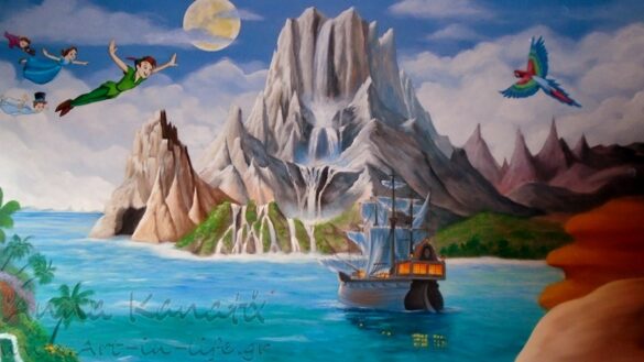 Στο παιδικό δωμάτιο του 3χρονου Άκη ζωγράφισα το αγαπημένο του θέμα , το νησί των πειρατών και την παρέα του Πήτερ Παν.